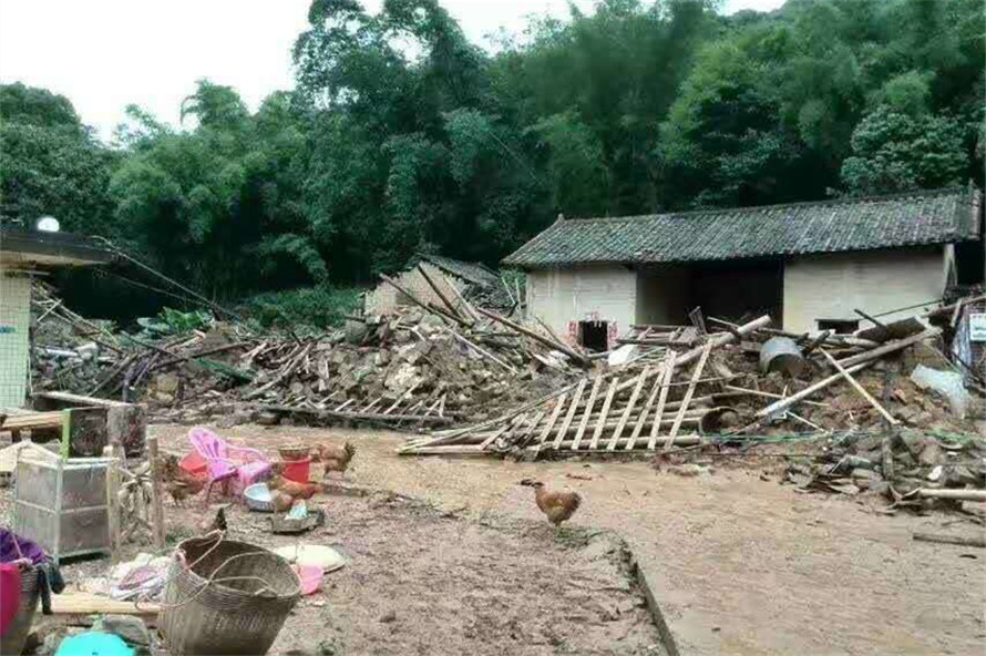 遭受暴雨強(qiáng)襲后的漢湖村大壩社祠堂
