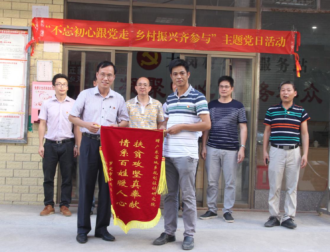 會議結束后,我院獲得大崗村委的錦旗,大崗村委負責人代表村委為我院對大崗扶貧、鄉(xiāng)村規(guī)劃以及鄉(xiāng)村振興工作表達了感謝。