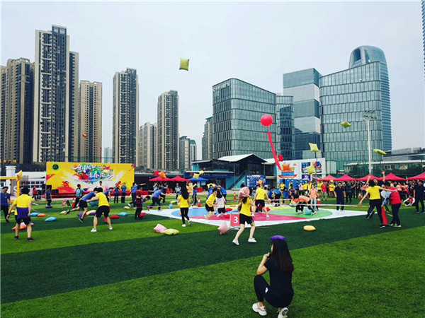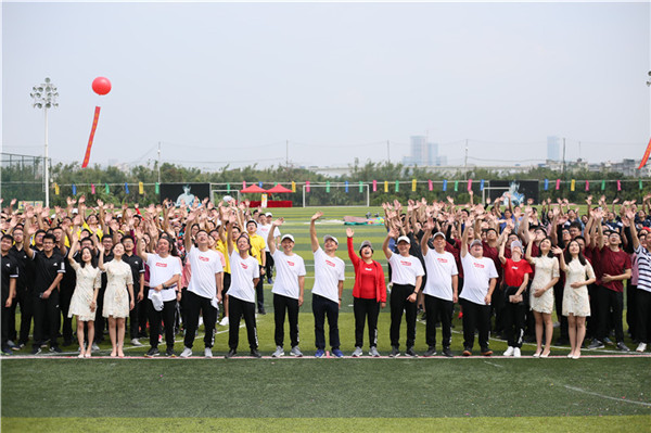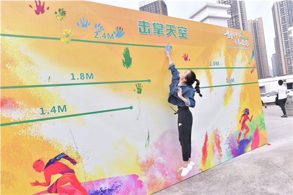 在運動會迎賓環(huán)節(jié),到達(dá)場地的同事們手蘸顏料,對著創(chuàng)意墻開始“擊掌天空”,在“合影框”中留下此刻燦爛的笑臉。