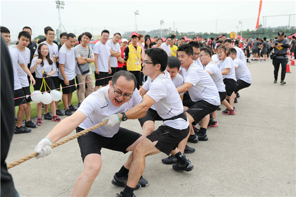 文明其精神,野蠻其體魄。領(lǐng)導(dǎo)們從來都不是旁觀者,他們身體力行,興致昂揚地與職工們一起參與了多個趣味運動項目。郭壯獅副廳長、李永潔總規(guī)劃師、朱國鳴處長、梁志華主任、黃祖璜主席、熊小玲書記興致昂揚地參與到拔河比賽當(dāng)中,郭壯獅副廳長親自吹響拔河總決賽的開拔口哨,親見全場力量最為強(qiáng)大的隊伍誕生!邱衍慶院長、錢中強(qiáng)書記、馬向明總工程師、王浩副院長與運動健兒們一起參加了趣味項目,共同協(xié)作完成,共享歡聲笑語。