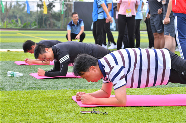 望著充滿運動激情與昂揚斗志的我院運動健兒們,錢中強(qiáng)書記作開幕式致辭,錢書記為運動健兒們加油鼓氣,對大家提出了“展現(xiàn)體育拼搏精神、尊重比賽公平裁決、加強(qiáng)交流促進(jìn)團(tuán)結(jié)”的期許,并預(yù)祝此次運動會取得圓滿成功!致辭后,在大家的掌聲與歡呼聲中,錢中強(qiáng)書記、王浩副院長和馬向明總工程師手持紅色鼓槌,共同敲響了宣告本屆趣味運動會開幕的圓形大鑼,緊接著,院足球、籃球、網(wǎng)球、乒乓球、攝影、戶外俱樂部依次登場,為大家展現(xiàn)平日愛好與累積本領(lǐng),將開幕式現(xiàn)場推向高潮。之后,健身教練帶領(lǐng)全院人員進(jìn)行了賽前熱身活動,伴隨著歡快的音樂律動,大家活動筋骨、拉伸四肢、原地跳躍,為比賽環(huán)節(jié)做好充足準(zhǔn)備。