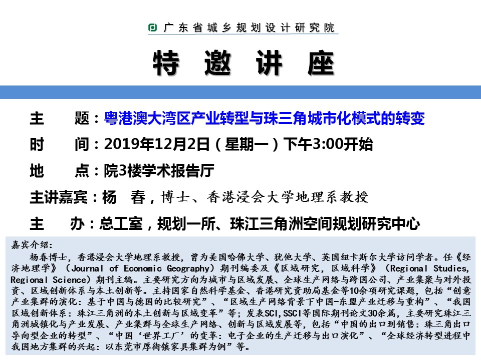 首頁(yè)>公司動(dòng)態(tài)>學(xué)術(shù)活動(dòng)>粵港澳大灣區(qū)產(chǎn)業(yè)轉(zhuǎn)型與珠三角城市化模式的轉(zhuǎn)變
