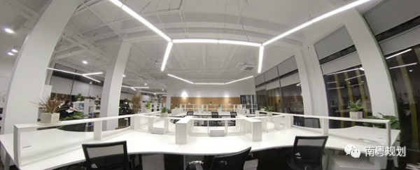 新辦公空間在思考如何增加了員工之間的互動(dòng)交流,但同時(shí)保證一定的隱私性方面做了獨(dú)特考量,即從辦公家具設(shè)計(jì)著手,摒棄以往設(shè)計(jì)院常用的一字型流水線模式,大膽采用 “Y”型辦公桌,并與“Y”燈光融為一體,每六人可自由組合成一個(gè)工作小組,分工合作,高效共贏。同時(shí),除基本的辦公需求之外,多重服務(wù)性空間帶給使用者更好的體驗(yàn),如在每個(gè)工作組附近均設(shè)置了小品綠化,亦或是休閑討論空間,為辦公模式提供了更多的可能性。