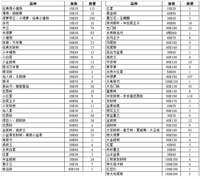 按地點、規(guī)格、數(shù)量要求提供綠植擺放、維護、保養(yǎng)及大院內(nèi)綠植養(yǎng)護。