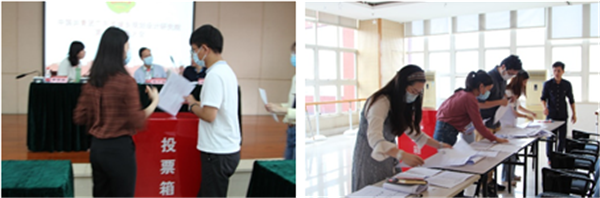 隨后,會議全體表決通過了選舉辦法以及監(jiān)票人、計票人名單。大會詳細介紹了第八屆團總支委員會候選人基本情況,嚴格按照選舉辦法,選舉產(chǎn)生了第八屆團總支委員、書記、副書記。最終,唐紫薇、彭衍慈、何星星、張世君、張瀟越、左坤、陳海洋(按得票排序)七名同志當選第八屆團總支委員,唐紫薇當選第八屆團總支書記、何星星當選團總支副書記。