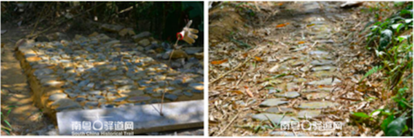 左圖為近期鋪設(shè)的試驗(yàn)段,右圖為古驛道原始本體