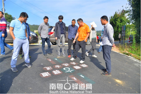 技術(shù)指導(dǎo)組專家檢查路面上的古驛道logo