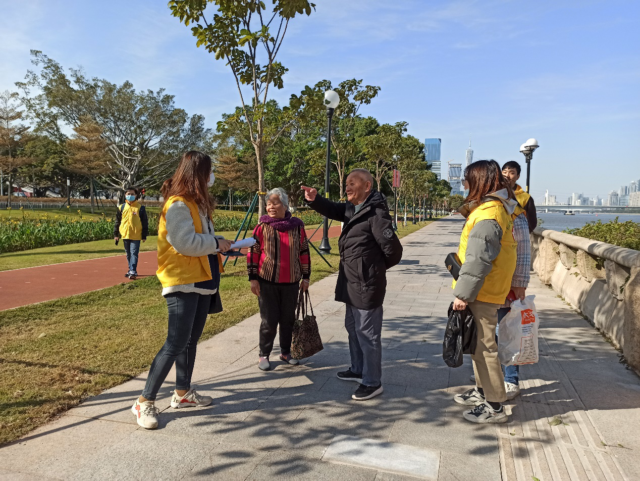 一是面向公眾:科普講解廣東萬(wàn)里碧道的相關(guān)知識(shí)。志愿者們在閱江路碧道新時(shí)代驛站內(nèi)布置宣傳展架等材料,并與往來(lái)碧道的市民群眾進(jìn)行交流,積極地向市民群眾介紹萬(wàn)里碧道的背景、內(nèi)涵、建設(shè)內(nèi)容以及閱江路碧道示范段的設(shè)計(jì)方案。