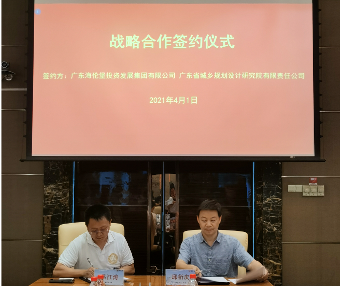 4月1日下午,廣東省城鄉(xiāng)規(guī)劃設(shè)計研究院有限責(zé)任公司(下稱“省城規(guī)院”)與廣東海倫堡投資發(fā)展集團有限公司(下稱“海倫堡集團”)戰(zhàn)略合作協(xié)議簽約儀式在廣州番禺海倫堡產(chǎn)業(yè)園舉行。省城規(guī)院黨委書記、董事長、院長邱衍慶,海倫堡集團副總裁呂江濤代表雙方簽約。