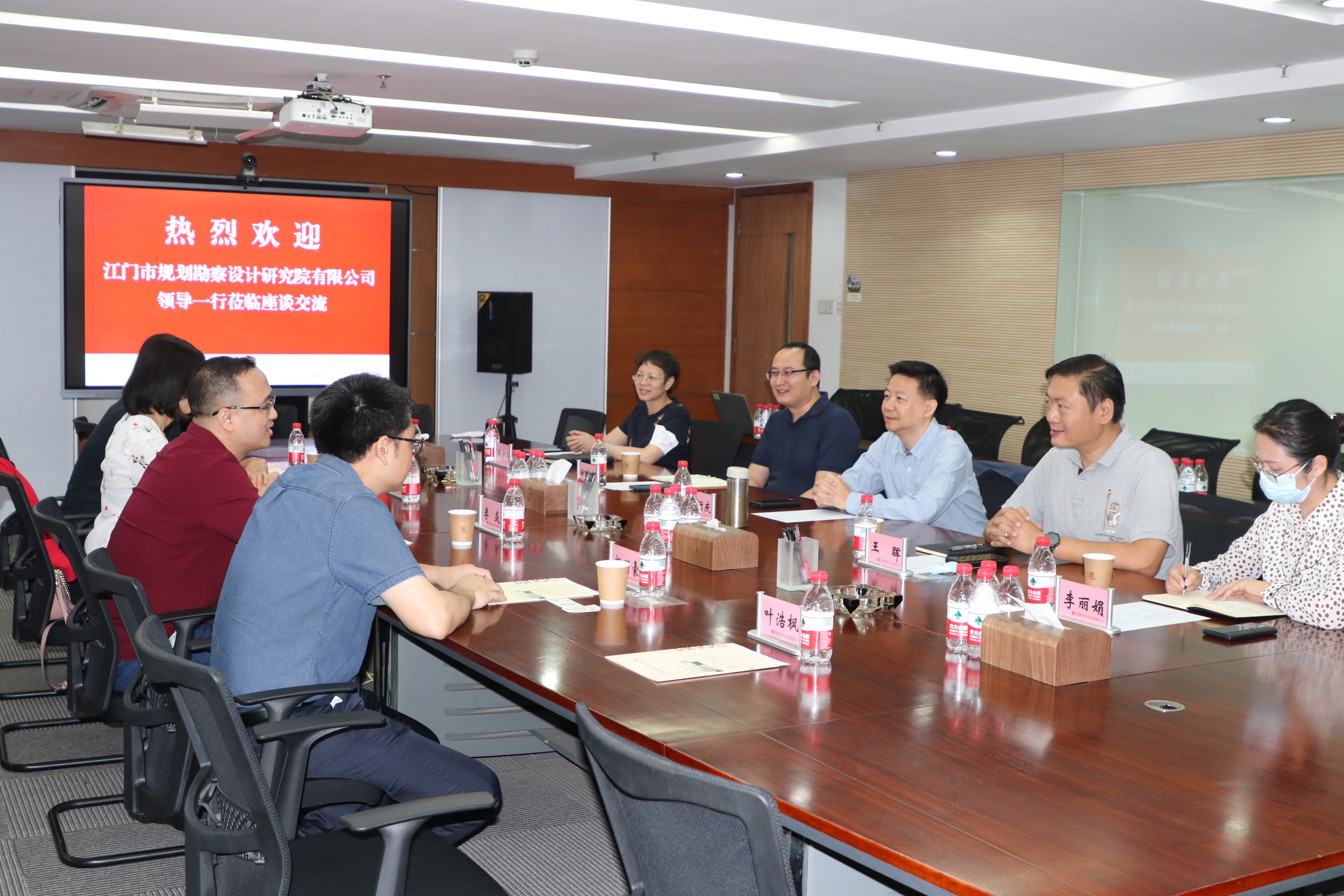 江門市規(guī)劃勘察設(shè)計研究院有限公司黨支部副書記趙艷姝、副總經(jīng)理楊明豪、副總經(jīng)理井西振,省城規(guī)院總工程師馬向明、副總經(jīng)理王暉、副總經(jīng)理任慶昌,以及雙方相關(guān)部門負(fù)責(zé)同志參加座談交流。