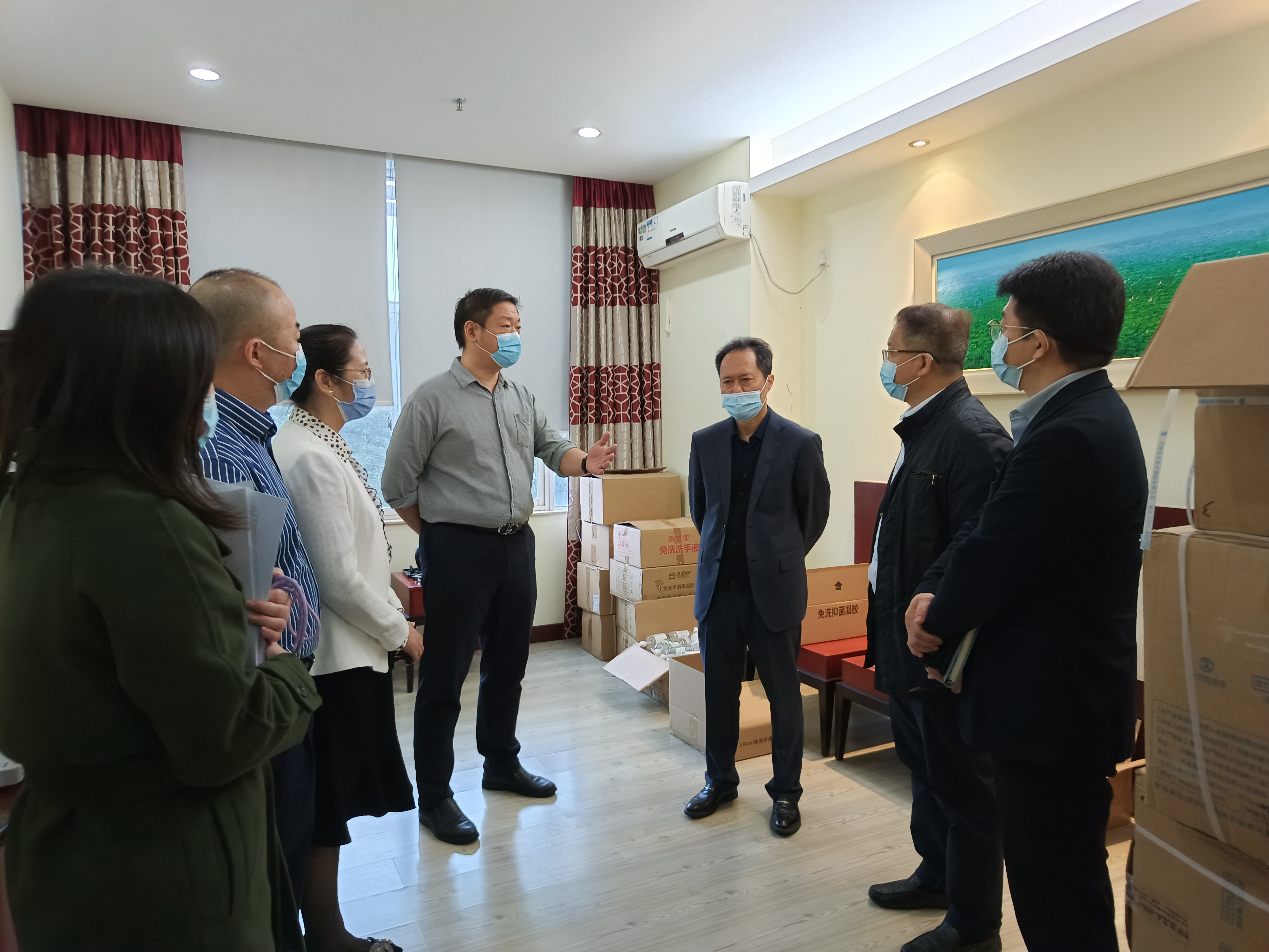 楊愛軍一行現(xiàn)場檢查了省城規(guī)院人員、車輛出入查驗、臨時隔離點、快遞消殺點及防疫物資儲備等情況,聽取了省城規(guī)院安全生產及疫情防控工作匯報,并進行了督導。