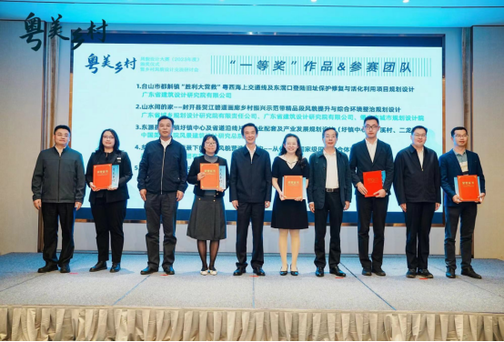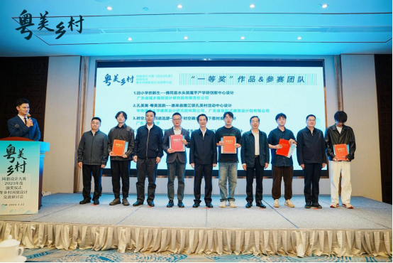 我司獲獎項目“山水間的家”(右五)、“山鄉(xiāng)新巨變”(右三)代表上臺領(lǐng)獎