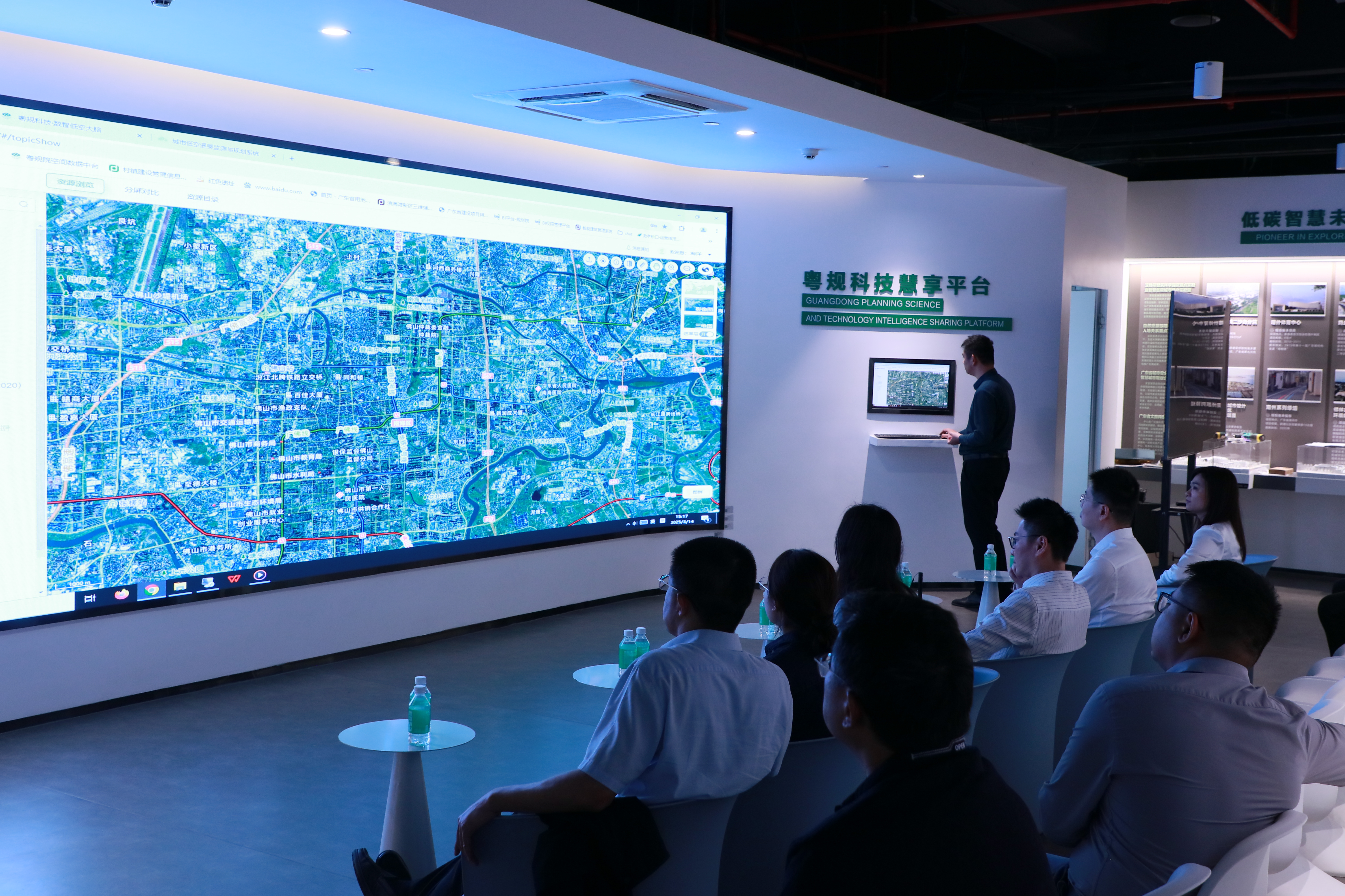 王暉對省低空經(jīng)濟公司領(lǐng)導來訪表示歡迎,帶領(lǐng)參觀了一樓院史展廳、二樓粵規(guī)數(shù)智展廳,并詳細展示了粵規(guī)院科技集團在低空經(jīng)濟領(lǐng)域自主研發(fā)的“1+3”低空平臺體系(即1個空間數(shù)據(jù)底座,低空數(shù)智大腦+低空飛控系統(tǒng)+低空飛服系統(tǒng)等3個系統(tǒng))。會上,中國電子科技集團有限公司(以下簡稱中電科)電科萊斯空管國家重點實驗室技術(shù)專家龔穎達介紹了中電科在低空經(jīng)濟領(lǐng)域的經(jīng)驗和暢想?;浺?guī)院科技集團總工程師羅勇匯報了公司在低空經(jīng)濟業(yè)務(wù)板塊開展的相關(guān)工作,以及雙方在低空經(jīng)濟產(chǎn)業(yè)相關(guān)咨詢和設(shè)計、數(shù)據(jù)共享方向的合作領(lǐng)域。