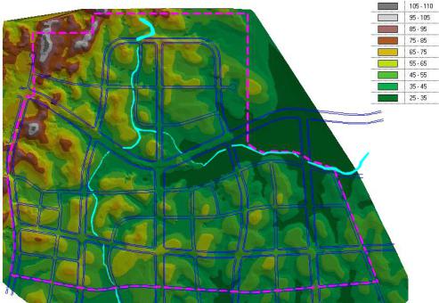 2. 利用GIS技術(shù)模擬自然地形及設(shè)計(jì)完成面的地形,通過兩者分析比對(duì),更好地找出規(guī)劃及方案設(shè)計(jì)中存在的問題;
