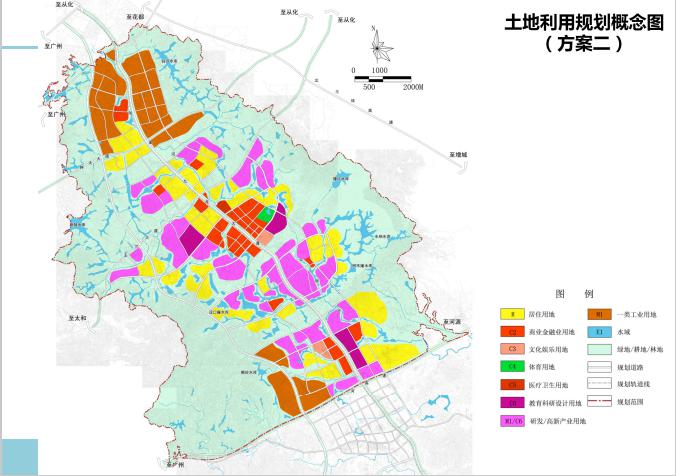 3. 進行了多方案的比選。為了更直觀地體現(xiàn)知識城未來的發(fā)展藍圖,在研究中,針對知識城規(guī)劃區(qū)內可能出現(xiàn)的不同的用地布局和產業(yè)布局特點進行了多方案的比較分析,分別從“總體結構”、“功能分區(qū)”、“用地布局”、“道路交通”、“綠化系統(tǒng)”、“主要規(guī)劃參數”等方面進行了可行性的方案比選,分析在不同的空間布局下,知識城的規(guī)劃建設可能出現(xiàn)的各種利弊條件,并在結論中給出了推薦方案及推薦理由。