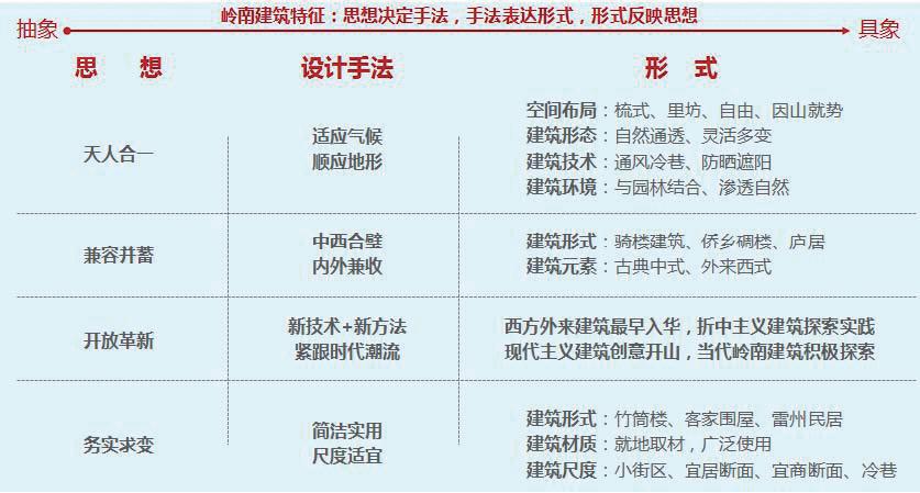 《規(guī)劃》深入解讀題目,為明確相關概念界定,依次開展了關于何為嶺南建筑特色的研究、關于如何弘揚嶺南城市建筑特色的研究和關于城市設計如何彰顯嶺南特色的研究,進而為規(guī)劃編制在嶺南建筑特色弘揚的引導上提供基本判斷和方向依據(jù),在嶺南特色城市設計的相關指引上提供基礎判斷。