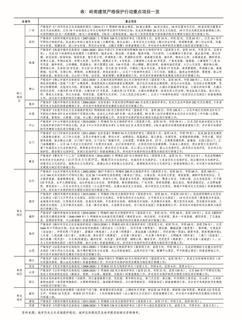 “十二五”期間,全省加快建設文化強省步伐,相繼編制與落實《廣東省建設文化強省規(guī)劃綱要 (2011—2020年 )》、《廣東省文化產(chǎn)業(yè)振興規(guī)劃(2011—2020 年)》、《廣東省文化事業(yè)發(fā)展“十二五”規(guī)劃》等規(guī)劃,加快了嶺南文化遺產(chǎn)保護工程的有序推進。各地市先后開展嶺南歷史文化街區(qū)、名鎮(zhèn)、名村的評選和申報工作,推動近現(xiàn)代建筑的保護與挖掘。然而,嶺南建筑及嶺南城市依然面臨著特色建筑和城市風貌遭受破壞、“奇奇怪怪”建筑層出不窮、政策引導缺乏、各方訴求難以平衡等問題。《弘揚嶺南城市建筑特色及城市設計“十三五”規(guī)劃》(以下簡稱《規(guī)劃》)作為《廣東省住房城鄉(xiāng)建設事業(yè)“十三五”規(guī)劃》的專項規(guī)劃之一,重在進一步弘揚嶺南地區(qū)的建筑文化特色,提升城市設計水平,建設文化強省,塑造具有時代氣息、體現(xiàn)地域特色和傳承歷史文化的城鄉(xiāng)風貌,打造宜居城市。