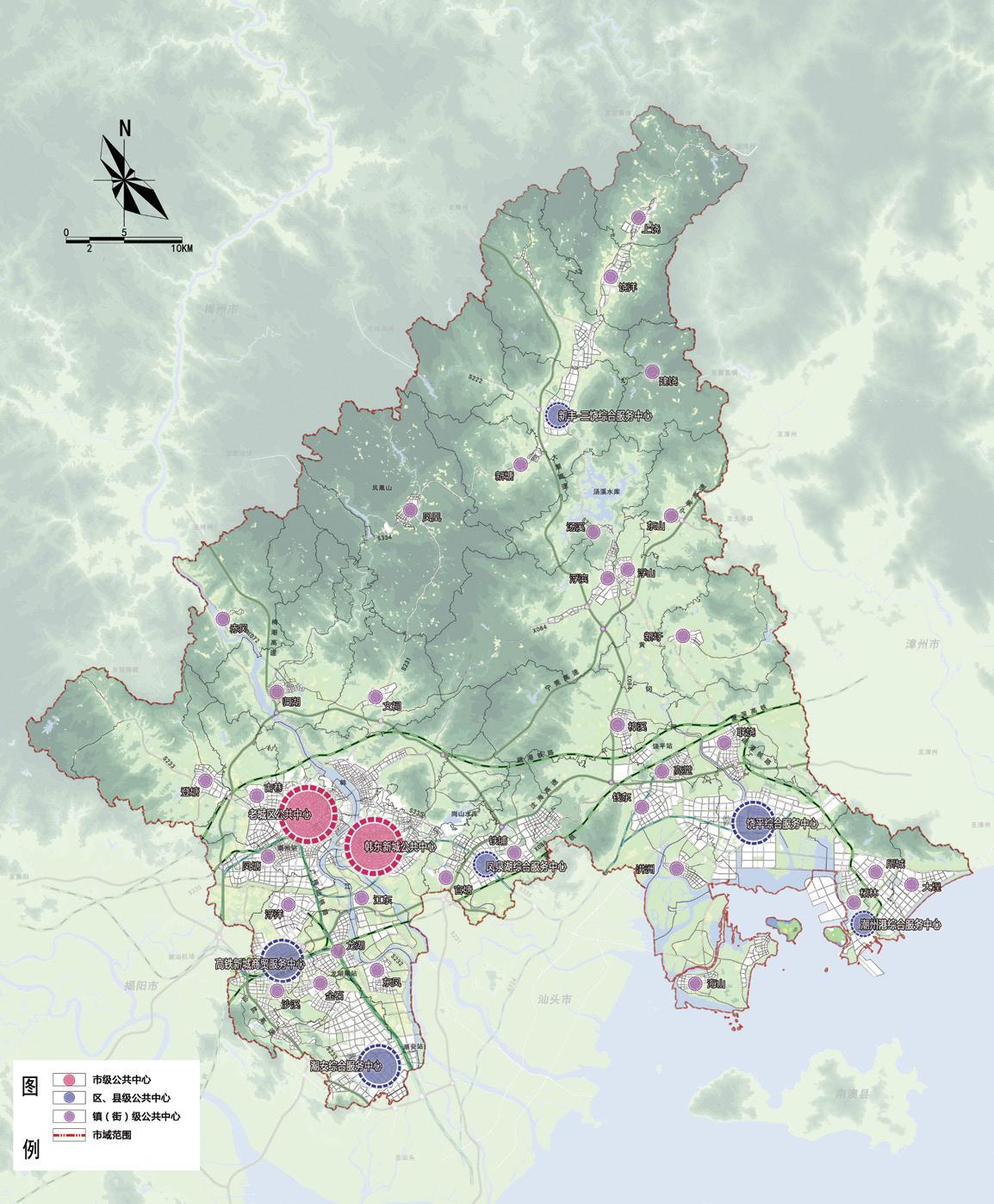 在區(qū)域?qū)用?,?guī)劃提出要把握國(guó)家“一帶一路”戰(zhàn)略機(jī)遇,加強(qiáng)經(jīng)貿(mào)合作、文化推廣與社會(huì)交流,并以閩粵經(jīng)濟(jì)合作區(qū)為橋頭堡加快兩省合作,促進(jìn)汕潮揭一體化建設(shè)。市域?qū)用?,要明確空間發(fā)展重點(diǎn)及各類型地區(qū)的發(fā)展路徑,率先推進(jìn)新城新區(qū)、產(chǎn)業(yè)平臺(tái)及重要廊道的建設(shè),堅(jiān)持“大集聚、小分散”的發(fā)展模式。