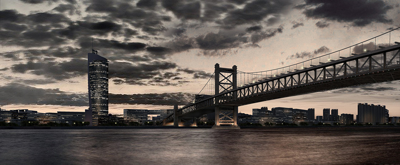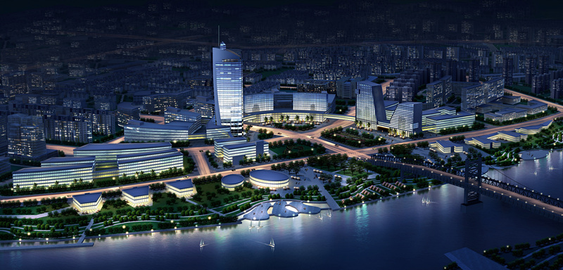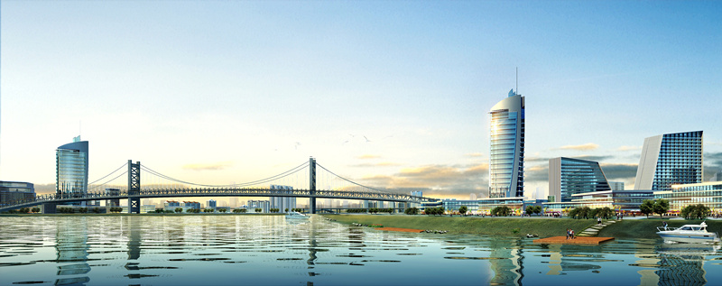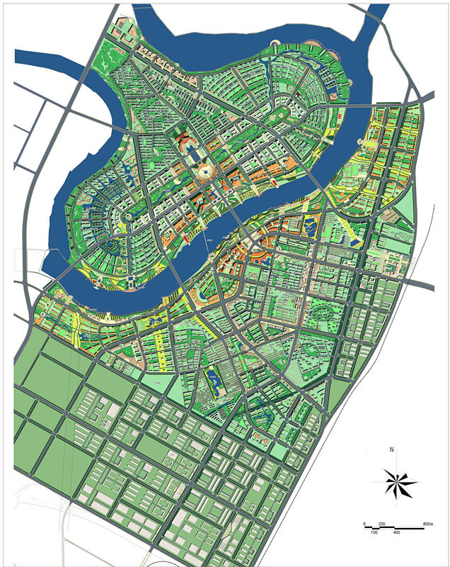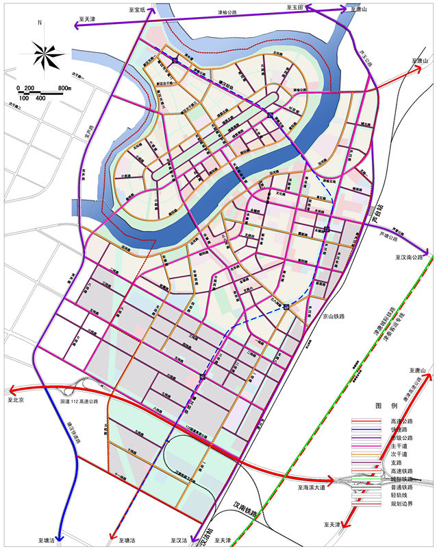 提出了“一水穿城過,三星托月起”的構(gòu)思,一方面沿河發(fā)展,建設(shè)沿薊運河的經(jīng)濟景觀帶,另一方面,跨越薊運河建設(shè)橋北,變單純平行河流發(fā)展為同時平行、垂直河流發(fā)展,形成雙T字型的城市發(fā)展軸線。
