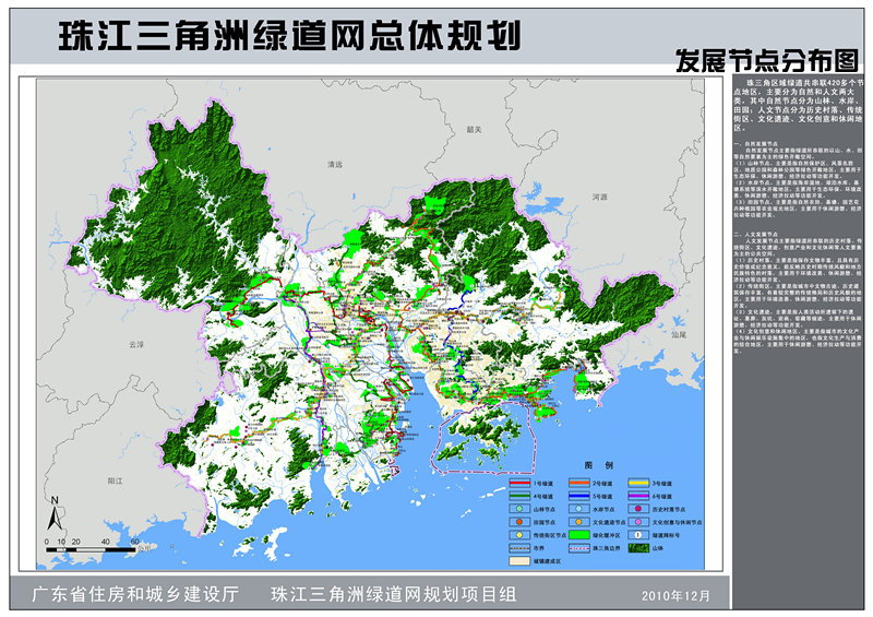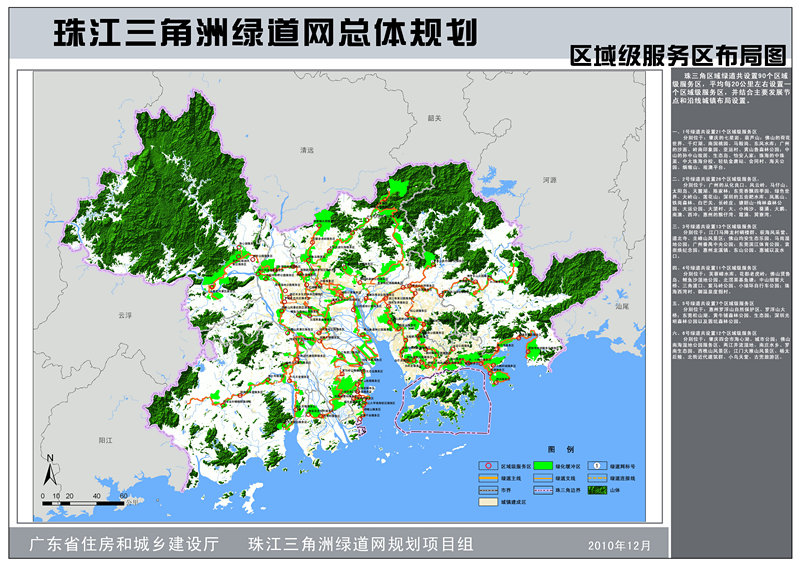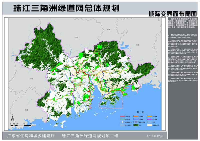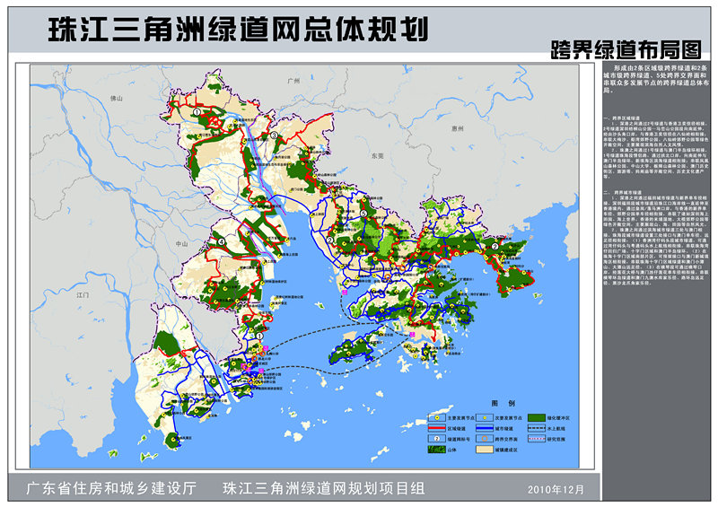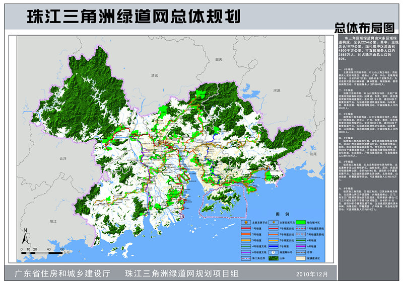 為將“珠三角綠道網(wǎng)”建設(shè)成為廣東省實(shí)踐科學(xué)發(fā)展觀,建設(shè)宜居城鄉(xiāng)、惠及廣大百姓的標(biāo)志性工程。規(guī)劃根據(jù)汪洋書記提出的“一年基本建成,兩年全部到位,三年成熟完善”工作目標(biāo),重點(diǎn)細(xì)化了未來(lái)兩年的建設(shè)任務(wù);在《珠江三角洲綠道網(wǎng)總體規(guī)劃綱要》確定的“6條主線、4條連接線、22條支線、18處城際交界面和4410平方公里綠化緩沖區(qū)”的綠道網(wǎng)總體布局的基礎(chǔ)上,借鑒國(guó)外經(jīng)典理論與成熟案例,運(yùn)用GIS多因子分析方法科學(xué)建構(gòu)了珠三角綠道網(wǎng)的整體格局,通過(guò)“省市聯(lián)動(dòng)、上下協(xié)同”的工作方式,對(duì)各城市的綠道線路走向進(jìn)行了修正與完善,并預(yù)留與港澳、粵東西北地區(qū)銜接的接口,還對(duì)將要全面鋪開的城市綠道建設(shè)提供技術(shù)指引。為了提升綠道內(nèi)涵,保證科學(xué)管理與長(zhǎng)效運(yùn)營(yíng),規(guī)劃深化補(bǔ)充了生態(tài)建設(shè)、配套設(shè)施、交通銜接、功能開發(fā)、保障措施、管理維護(hù)以及推廣宣傳等內(nèi)容。