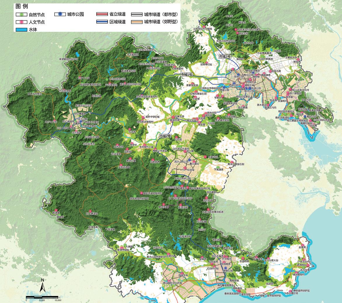 從市域、市區(qū)、各縣市等不同層面,分別進行綠道選線規(guī)劃,并進行專項配套規(guī)劃。