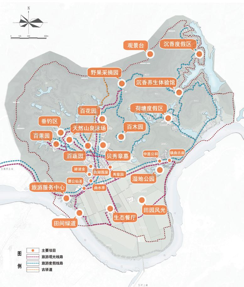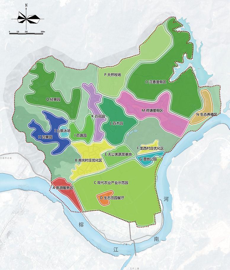 項(xiàng)目結(jié)合湖光村實(shí)際,通過挖掘山、水、林、田等自然資源;梳理歷史遺跡、古道、貝氏耕讀文化、長壽之鄉(xiāng)等人文資源,確定“客家耕讀、長壽曲湖生態(tài)農(nóng)場(chǎng)” 的主題 。