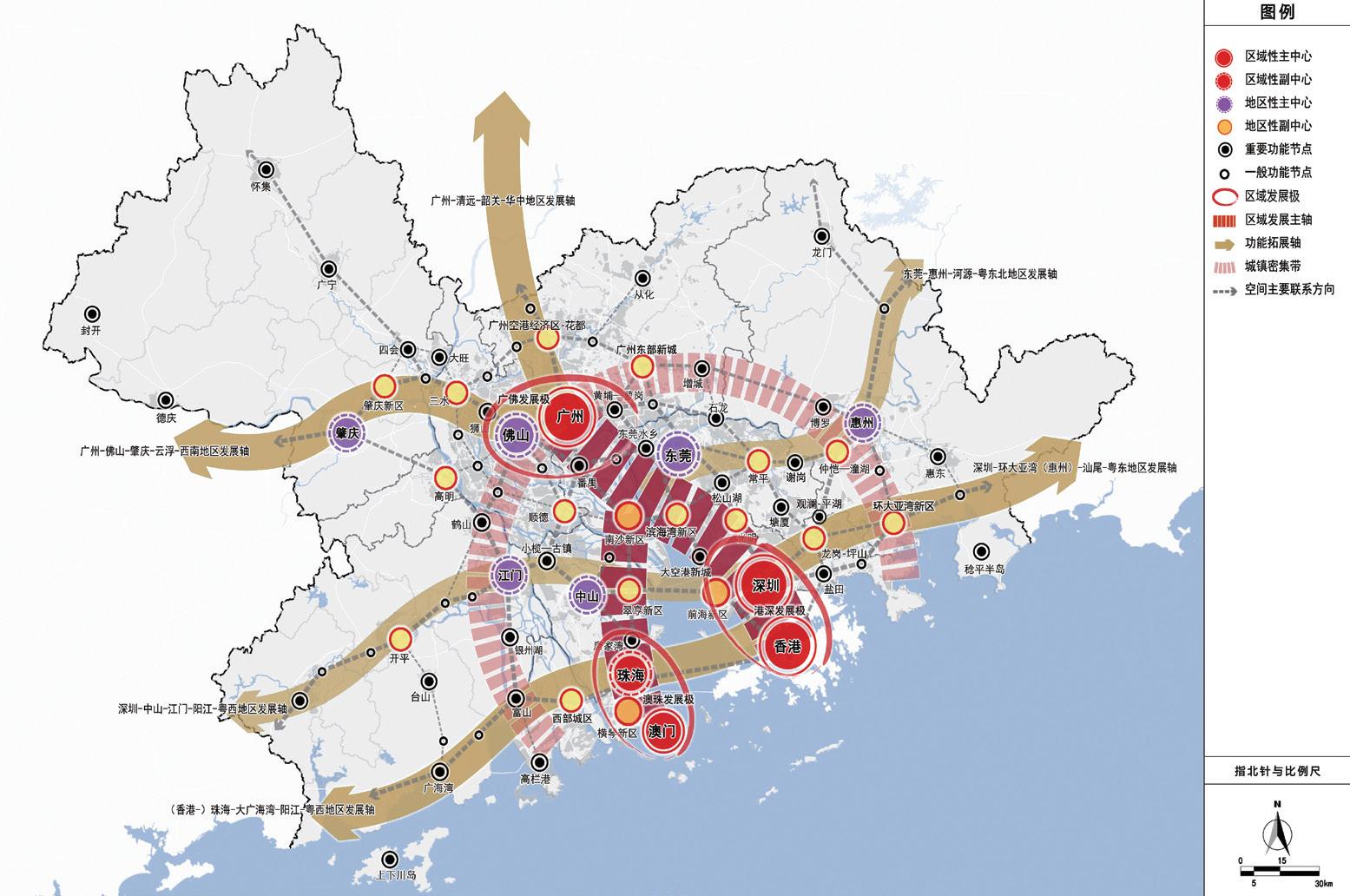 《全域規(guī)劃》擬通過對珠三角空間的科學(xué)謀劃,為《珠三角規(guī)劃綱要》提供支撐,并預(yù)期到 2020 年,努力將珠三角建設(shè)成為:中國 21 世紀(jì)海絲戰(zhàn)略樞紐與國際性交往中心、國家深化改革先行區(qū)和自主創(chuàng)新示范區(qū)、我國重要的經(jīng)濟(jì)中心及增長引擎、亞太地區(qū)競爭能力較強(qiáng)的世界級(jí)城市群。
