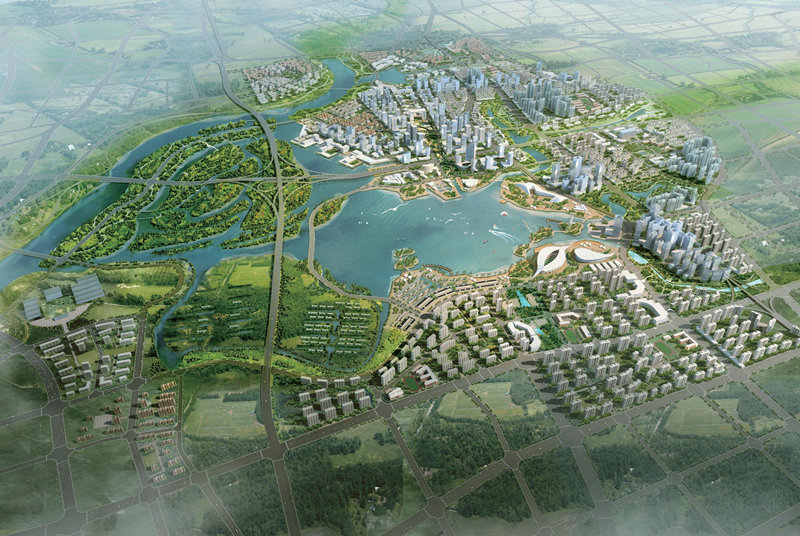 以流溪河為生態(tài)基底,并結(jié)合原有的生態(tài)廊道及河涌水系,在匯集處開敞成湖,形成河湖一體,塑造獨有的以河、湖、島、灣為特色的城市景觀空間。