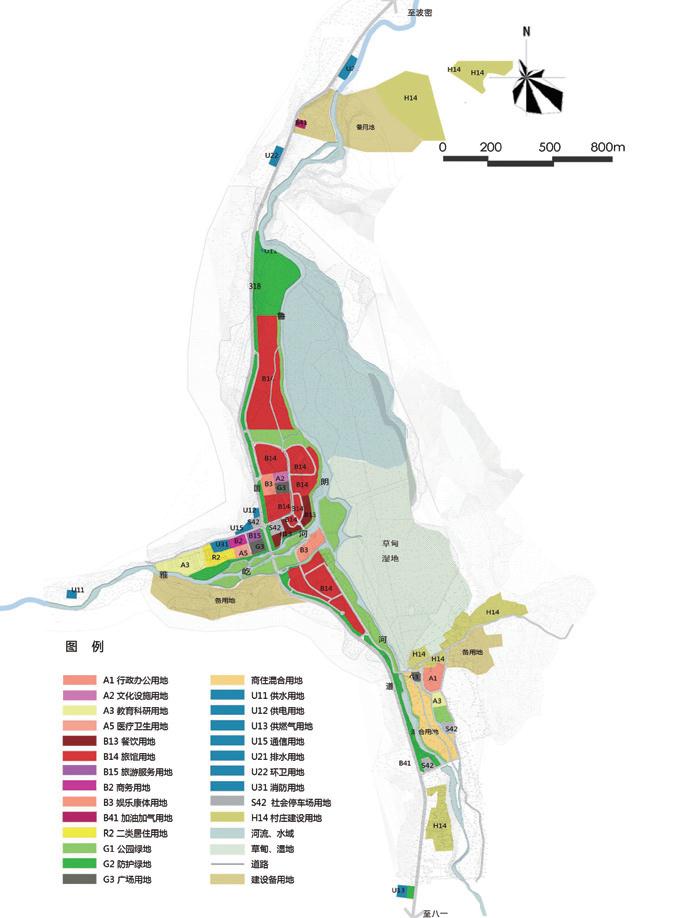 針對(duì)規(guī)劃區(qū)地處青藏高原,生態(tài)敏感、環(huán)境脆弱的特點(diǎn),規(guī)劃明確空間管控界限,嚴(yán)格保護(hù)魯朗河、雅屹河及周邊的濕地、草甸、森林等生態(tài)敏感要素,充分預(yù)留了泥石流等自然災(zāi)害風(fēng)險(xiǎn)的通道。