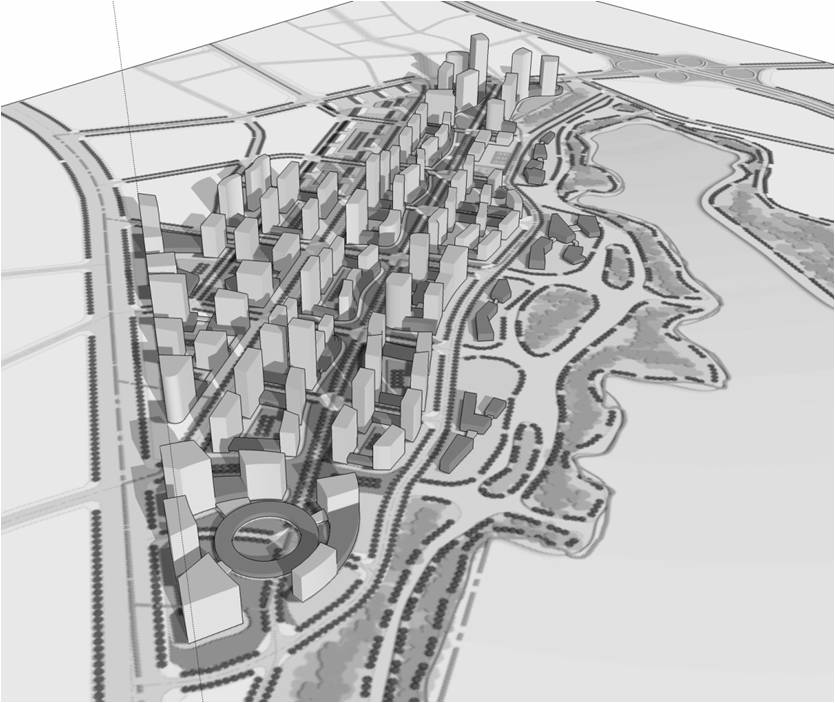 方案設(shè)計(jì)上,規(guī)劃方案采用滲透與連接手法:強(qiáng)調(diào)基地各開(kāi)敞空間與濱水生態(tài)空間的滲透、融合,打造綠色的生態(tài)網(wǎng)絡(luò);通過(guò)對(duì)福安路雙層立體空間步行網(wǎng)絡(luò)的建構(gòu),強(qiáng)化基地各個(gè)功能組團(tuán)的溝通與聯(lián)系,構(gòu)建相互融合的功能空間。