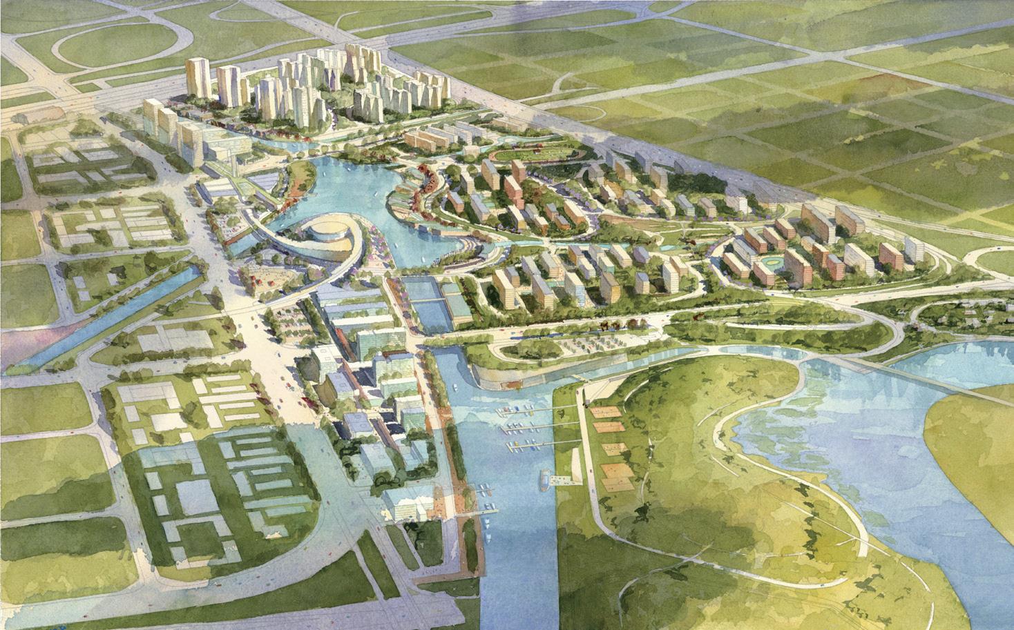 以蓮花山地區(qū)特有的“圍”——水溶性低丘陵地貌為規(guī)劃形態(tài)藍(lán)本,重塑嶺南水鄉(xiāng)的自然地型地貌,重塑山水相融、生態(tài)宜居的居住區(qū)典范,蓮花山周邊地區(qū)的獨(dú)特地型風(fēng)貌和水系景觀在亞運(yùn)村的規(guī)劃與建設(shè)中得到保護(hù)和再現(xiàn)。