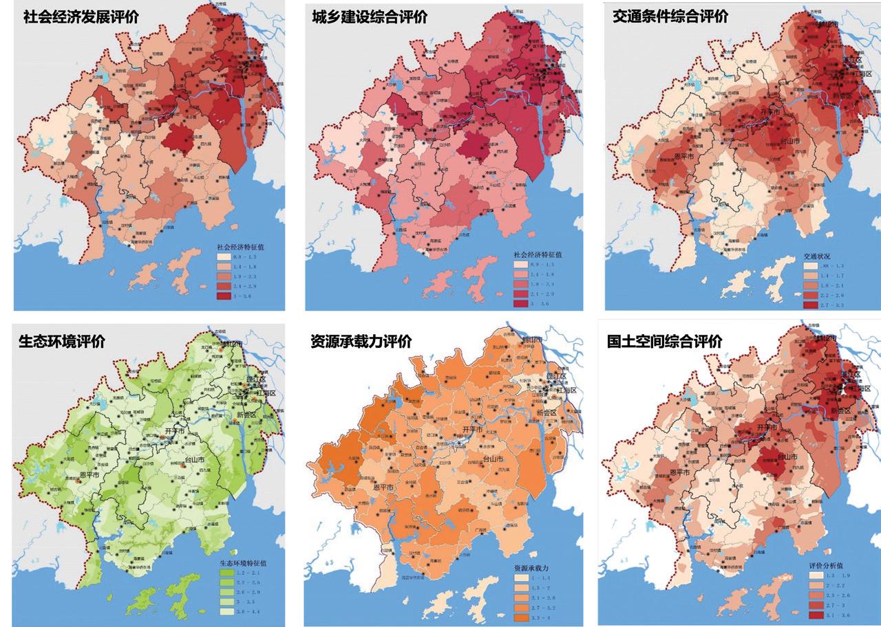 為體現(xiàn)江門市開發(fā)潛力和“濱海、僑鄉(xiāng)、溫泉”三大地域特色,規(guī)劃建立了包括 6 大指標(biāo) 33 個(gè)因子的評價(jià)指標(biāo)體系,提出傳統(tǒng)數(shù)據(jù)庫與空間數(shù)據(jù)庫相結(jié)合的評價(jià)方法,建立了涵蓋經(jīng)濟(jì)、人口、國土、社會(huì)、生態(tài)等方面共 75 項(xiàng) 6000 多個(gè)數(shù)據(jù)的 GIS 空間“大數(shù)據(jù)”庫,對市域國土空間作出了科學(xué)合理的評價(jià),大幅提升空間數(shù)據(jù)的準(zhǔn)確性及實(shí)施的可操作性,為劃定江門市域空間主體功能區(qū)奠定基礎(chǔ),為重大項(xiàng)目與發(fā)展平臺(tái)的空間落地提供指導(dǎo)依據(jù)。