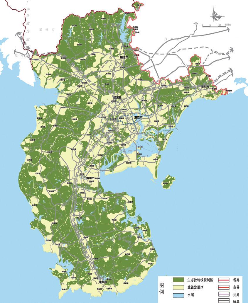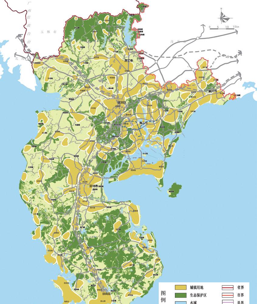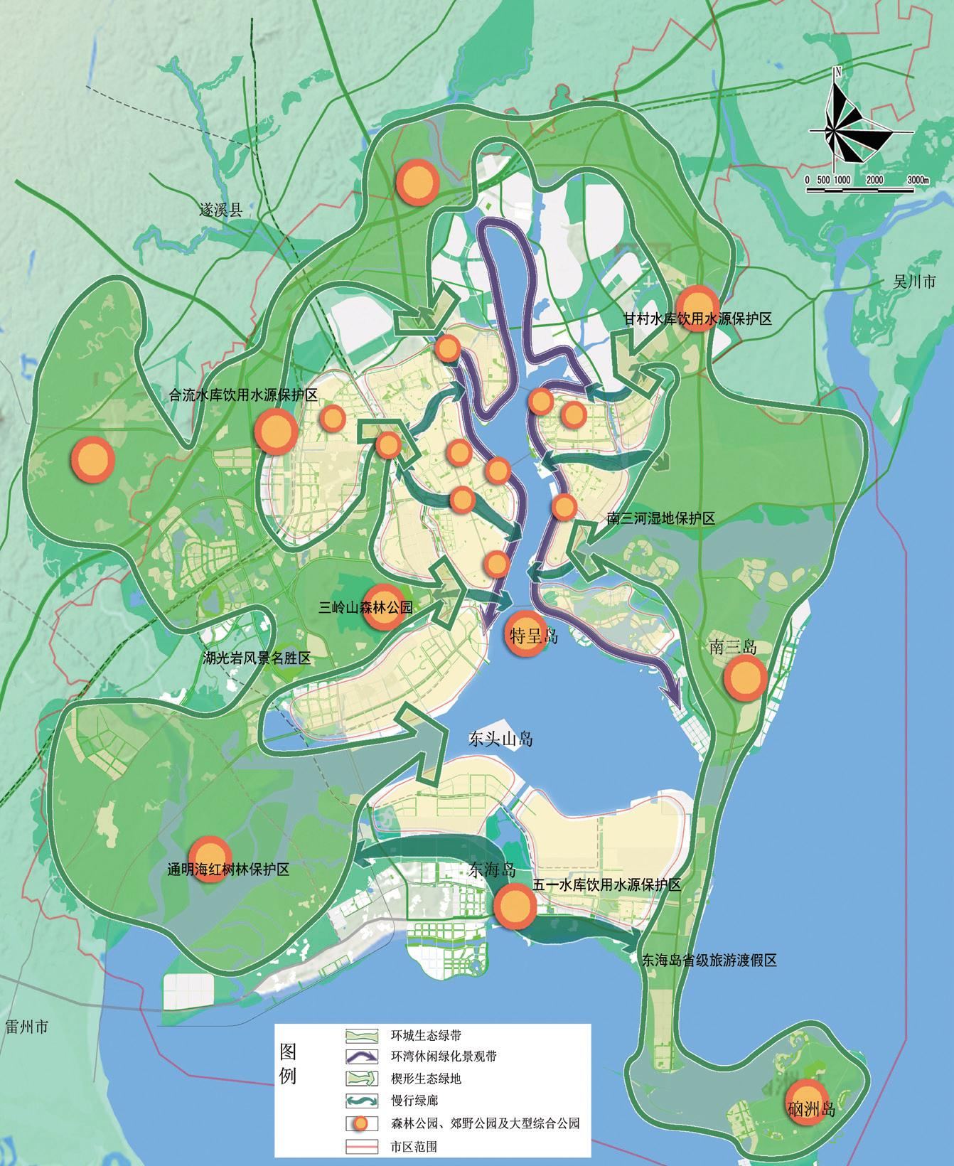 重點(diǎn)管控可以通過內(nèi)部空間調(diào)整而實(shí)現(xiàn)的低碳化建設(shè)措施。優(yōu)化城市布局和形態(tài),城鎮(zhèn)空間呈生態(tài)組團(tuán)式拓展,基本達(dá)到職住平衡;城鎮(zhèn)沿主要干線“TOD”開發(fā)基本成熟。完善基礎(chǔ)設(shè)施網(wǎng)絡(luò)體系,提高鐵路運(yùn)輸、內(nèi)河航運(yùn)承運(yùn)比重,形成節(jié)能型綜合交通運(yùn)輸體系。以分質(zhì)供水、再生水利用和低沖擊開發(fā)工程為抓手,提高湛江市水資源循環(huán)利用效率,建設(shè)海綿型城市。