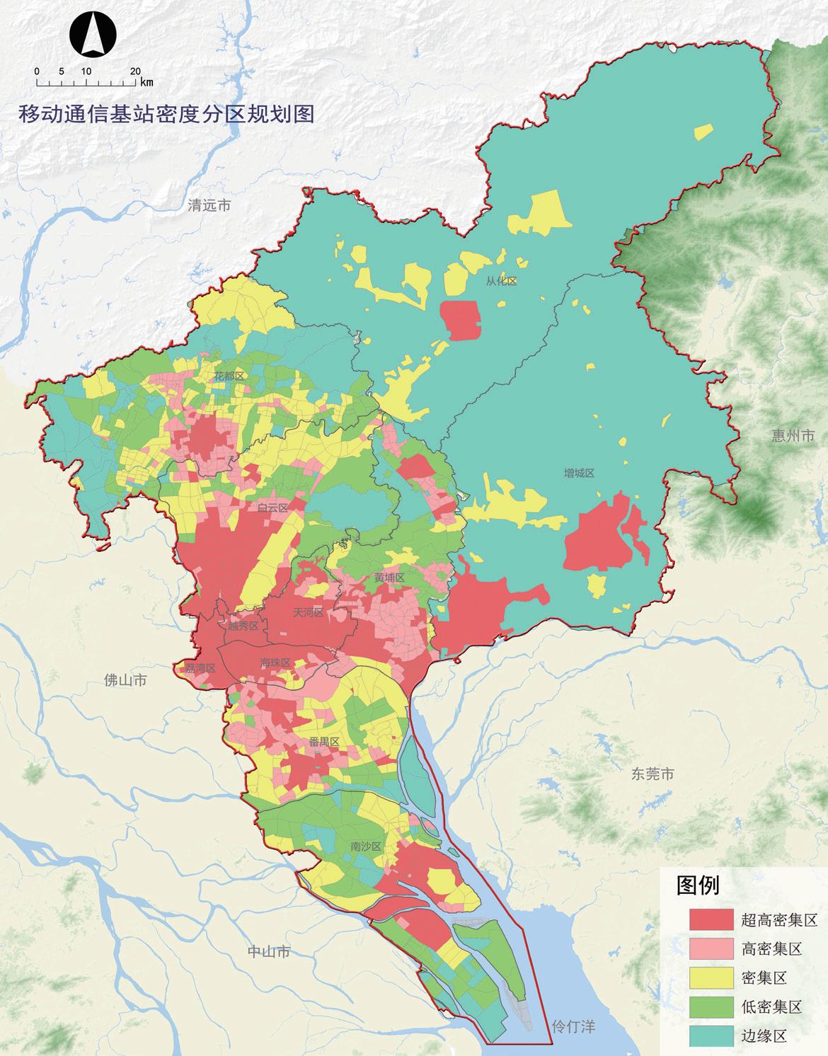 在落實“智慧廣州”、樞紐型國家信息港建設(shè)的戰(zhàn)略大部署下,將移動通信基站納入城鄉(xiāng)規(guī)劃體系,通過編制該規(guī)劃確定移動通信基站的整體布局,進(jìn)而在控制性詳細(xì)規(guī)劃圖則中進(jìn)行落實,有效增強基站建設(shè)的可操作性。在移動通信基站布局規(guī)劃中,科學(xué)分析基站站址與城市用地分類的匹配關(guān)系,劃定密度分區(qū),確定站間距和基站密度,合理建立總體布局。同時,對接總規(guī)和控規(guī),制定不同分區(qū)管控要求,構(gòu)建完善機(jī)制,推動基站建設(shè)合法化。