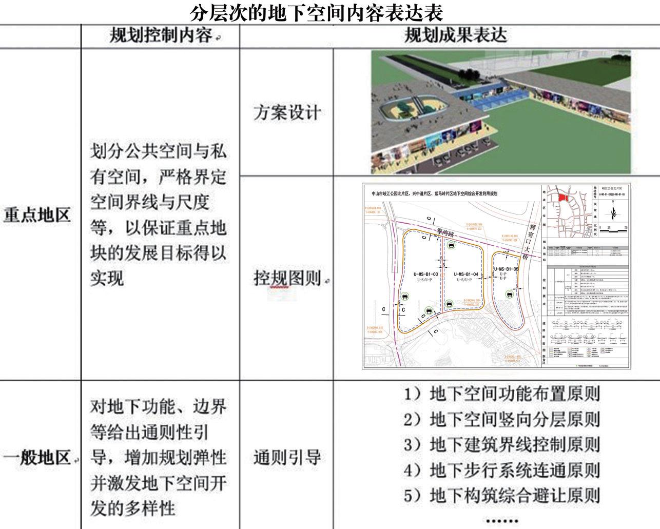 在對地下空間進(jìn)行差異化分區(qū)的基礎(chǔ)上,通過方案設(shè)計、圖則控制、導(dǎo)則指引三種不同深度的內(nèi)容表達(dá)以適應(yīng)不同類型地塊地下空間的建設(shè)指引與控制管理。