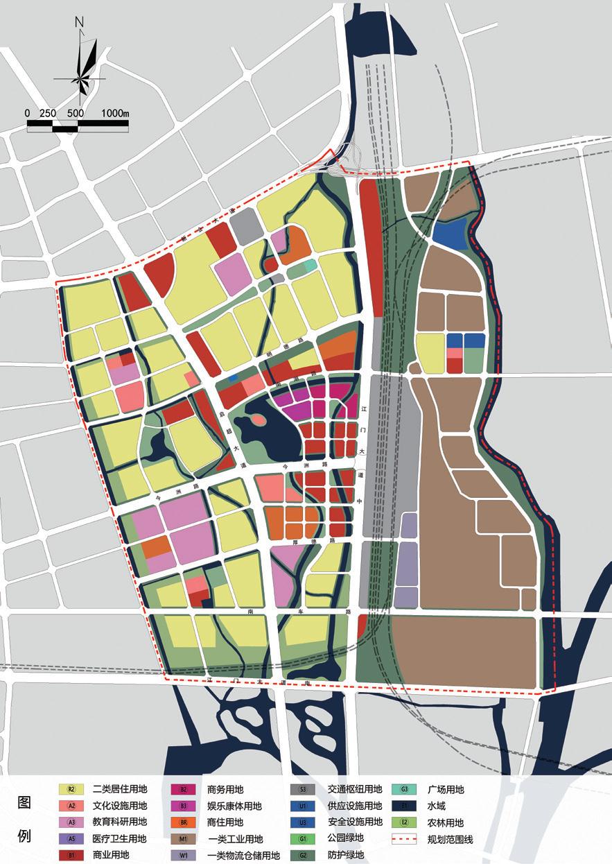 規(guī)劃依托現(xiàn)有城鎮(zhèn)基礎(chǔ)形成會(huì)城南區(qū)(核心區(qū))、雙水和三江 3 個(gè)片區(qū),構(gòu)建“一主兩副”的“金三角”城市空間。城市綜合服務(wù)職能向銀洲湖北岸集中形成產(chǎn)城融合發(fā)展帶,生產(chǎn)職能向銀洲湖南岸疏散形成現(xiàn)代產(chǎn)業(yè)發(fā)展帶,各片區(qū)建設(shè)用地組團(tuán)式布局,通過(guò)“環(huán)形—放射”路網(wǎng)加強(qiáng)各組團(tuán)之間的聯(lián)系,組團(tuán)之間保留足夠生態(tài)空間,以小鳥(niǎo)天堂為核心向外延伸形成通達(dá)交錯(cuò)的復(fù)合廊道生態(tài)空間。