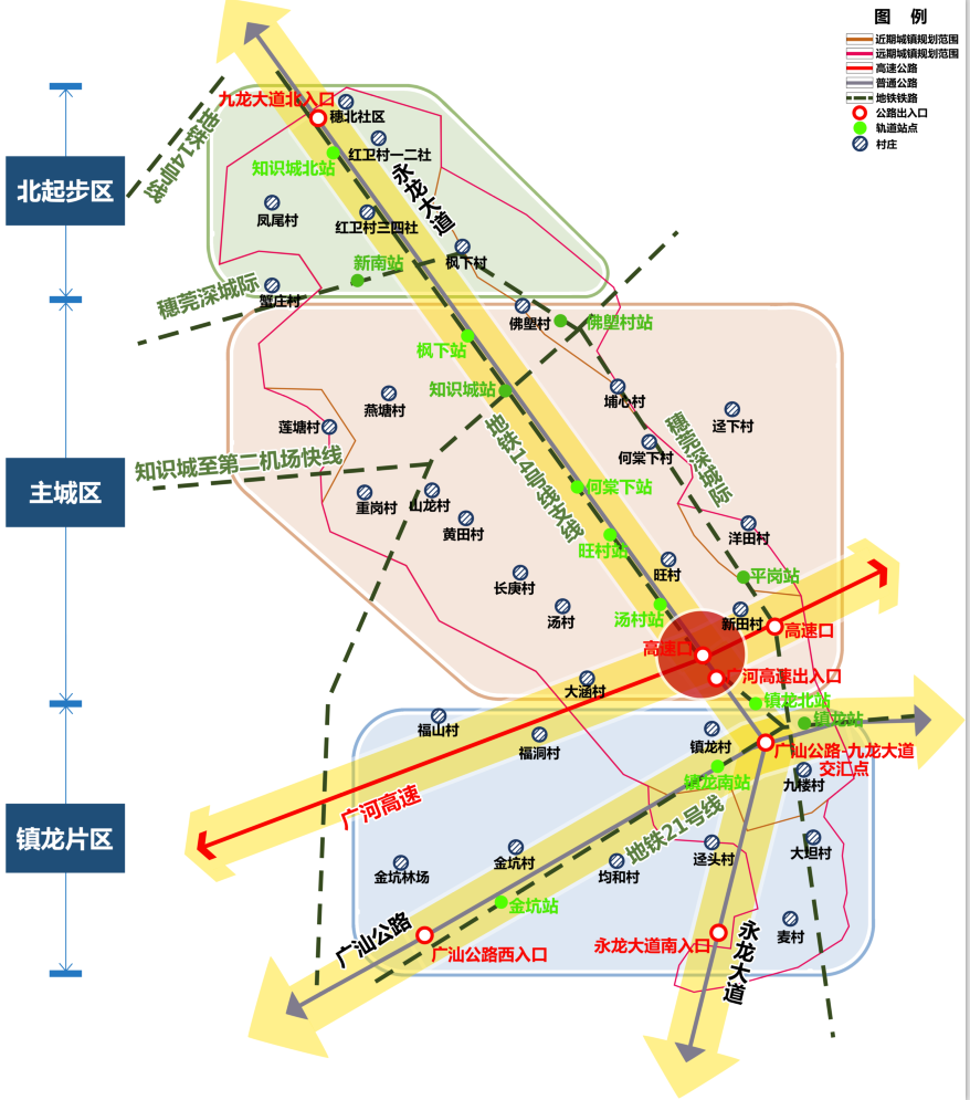 《黃埔區(qū)的鄉(xiāng)村建設(shè)規(guī)劃》規(guī)劃范圍,以唯一保留行政村的鎮(zhèn)域范圍——九龍鎮(zhèn)28條行政區(qū)為主。規(guī)劃區(qū)是中新知識(shí)城的空間依托,舊改造政策下的整村改造使得整個(gè)區(qū)域受到房地產(chǎn)開(kāi)發(fā)的強(qiáng)烈沖擊。