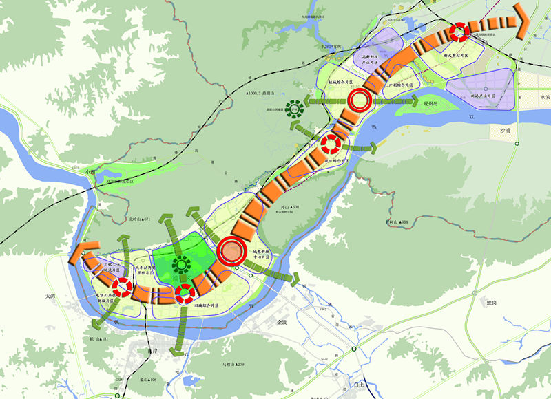 規(guī)劃從分析廣東省產(chǎn)業(yè)轉(zhuǎn)移、區(qū)域一體化等背景出發(fā),對肇慶承接產(chǎn)業(yè)轉(zhuǎn)移以及產(chǎn)業(yè)快速發(fā)展過程中,城市特色資源面臨巨大挑戰(zhàn)、環(huán)境保護(hù)壓力劇增等問題,對工業(yè)發(fā)展與風(fēng)景旅游城市建設(shè)、歷史文化名城保護(hù)的矛盾沖突;對區(qū)域一體化下的城市特色的同質(zhì)化等問題進(jìn)行綜合分析,提出了“集聚發(fā)展”、“精明增長”、“平行推進(jìn)”、“特色提升”四大發(fā)展策略,并強(qiáng)化組團(tuán)式軸向發(fā)展,實施分區(qū)引導(dǎo)控制,適當(dāng)分離工業(yè)與居住生活服務(wù)空間,優(yōu)化城市空間資源配置,以科學(xué)引導(dǎo)肇慶城市發(fā)展。
