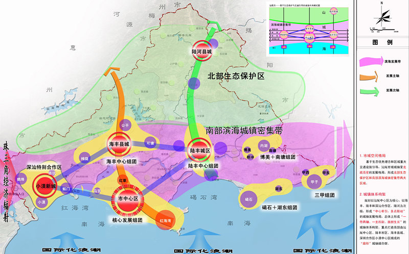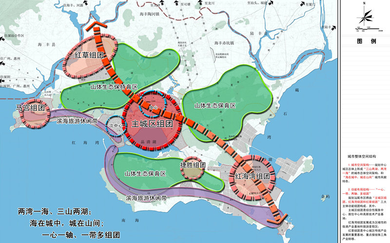 針對(duì)“弱中心”現(xiàn)狀,規(guī)劃由此提出,將汕尾中心城區(qū)和海豐縣城打造為組合型城市,共同帶動(dòng)市域經(jīng)濟(jì)發(fā)展。