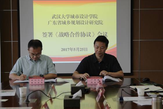 In the morning of May 25, Li Zhigang, the dean of School of Urban Design of Wuhan University, and his fellows made an informal discussion at our research institute and signed a strategic cooperation agreement. President Qiu Yanqing, Secretary Qian Zhongjiang of our research institute as well as the directors responsible for Human Resources Department, Chief-engineer Office, Planning II, Planning V and other departments participated in the discussion exchange meeting.