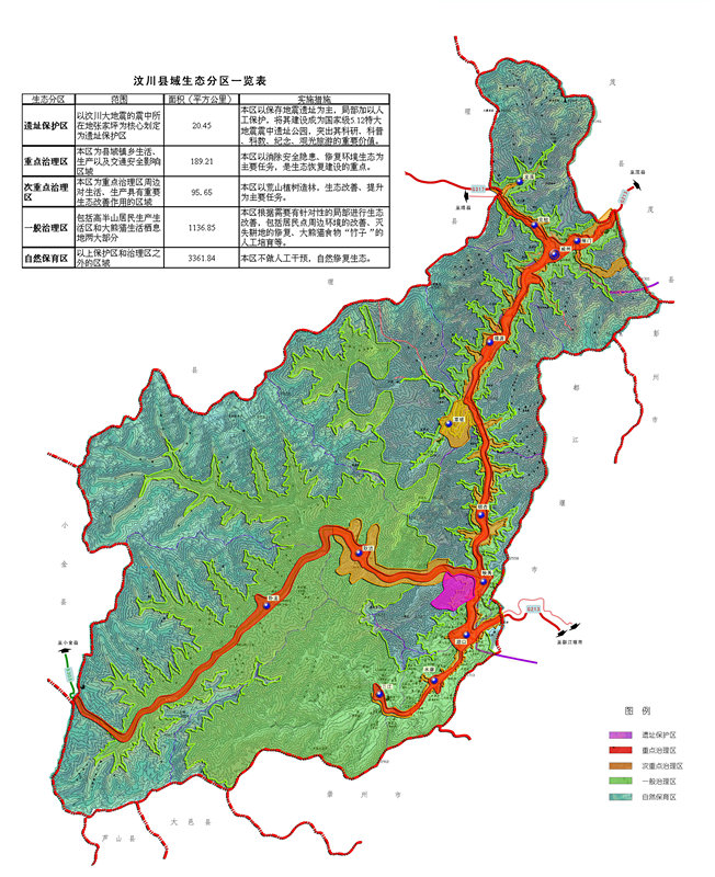 Through the combination of ecological restoration, disaster prevention and mitigation and urban system restoration and reconstruction, it intends to build a safety supporting system of urban construction and reconstruct an ecological system with more stable structure and optimized benefits through restoring the ecological environment and comprehensively preventing and controlling ecological disasters within the county. It emphasizes the function of roads as the lifeline of the region to enhance disaster prevention and mitigation capacity, promote the harmony between man and nature and ensure the comprehensive, coordinated and sustainable development of ecology, economy and society.